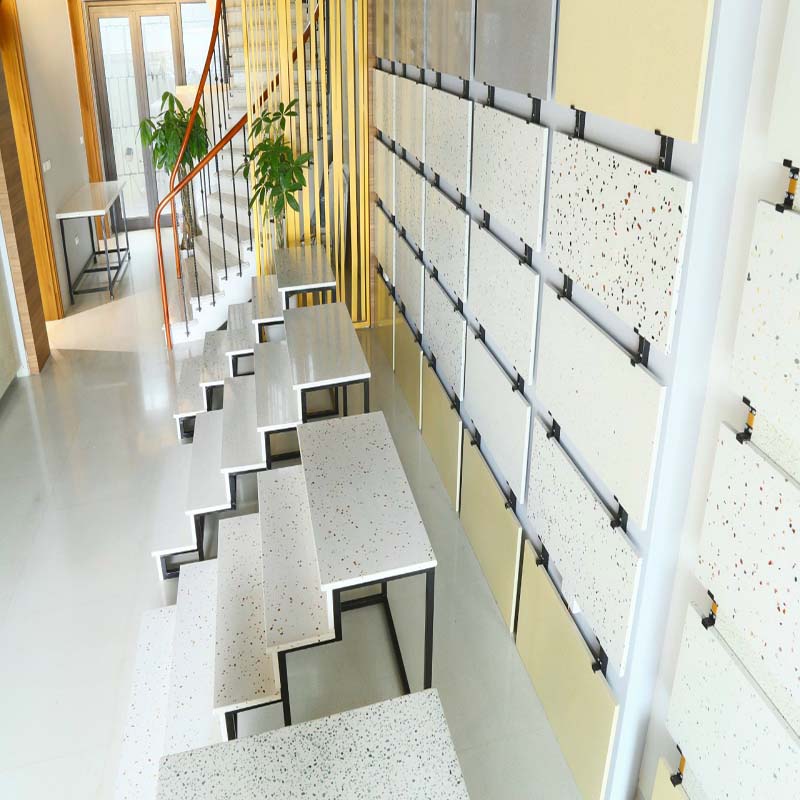 động và phá cách hơn bạn có thể sử dụng các cầu thang đá hoa cương màu nổi bật như đỏ, xanh, đen, tím…
