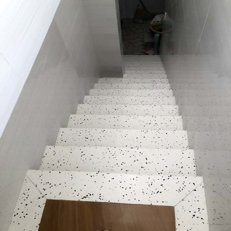 Bề mặt cầu thang đá hoa cương nhẵn bóng, sáng bóng, màu sắc tươi tắn tự nhiên.